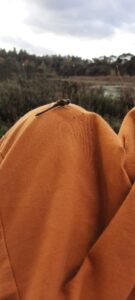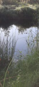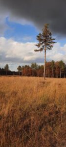 “Ik zit heerlijk tegen een dennenboom aan met gesloten ogen. Ik voel de wind langs mijn gezicht, leven… Doe mijn ogen weer open en zie een libelle op mn gele broek zitten. He, die blijft daar. Ze doet een poepje, een klein groen balletje. Dan sluit ik mn ogen weer en rusten we samen, verbonden. Ik voel me gezegend.”